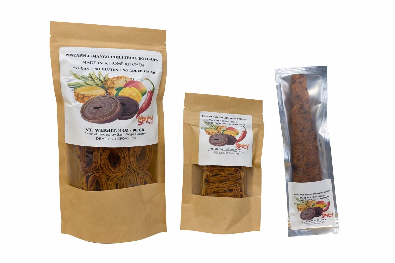 Sweet, tropical, and with a spicy twist — our Pineapple Mango Spicy Fruit Roll-Up brings the heat!