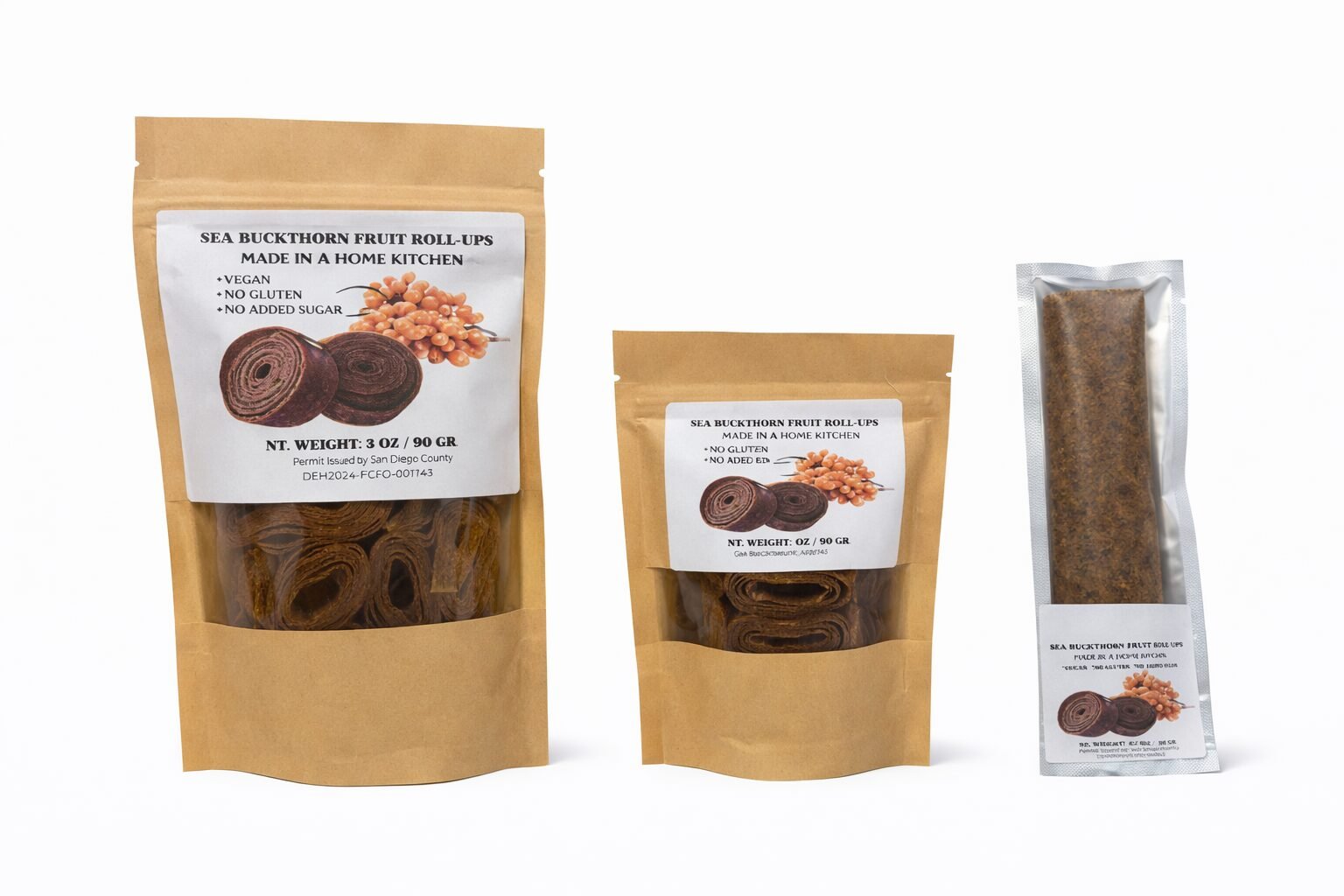 Sea buckthorn is a rare superberry with a unique tart flavor. This roll-up is for those who love bold tastes and want a health-forward snack with serious benefits.
